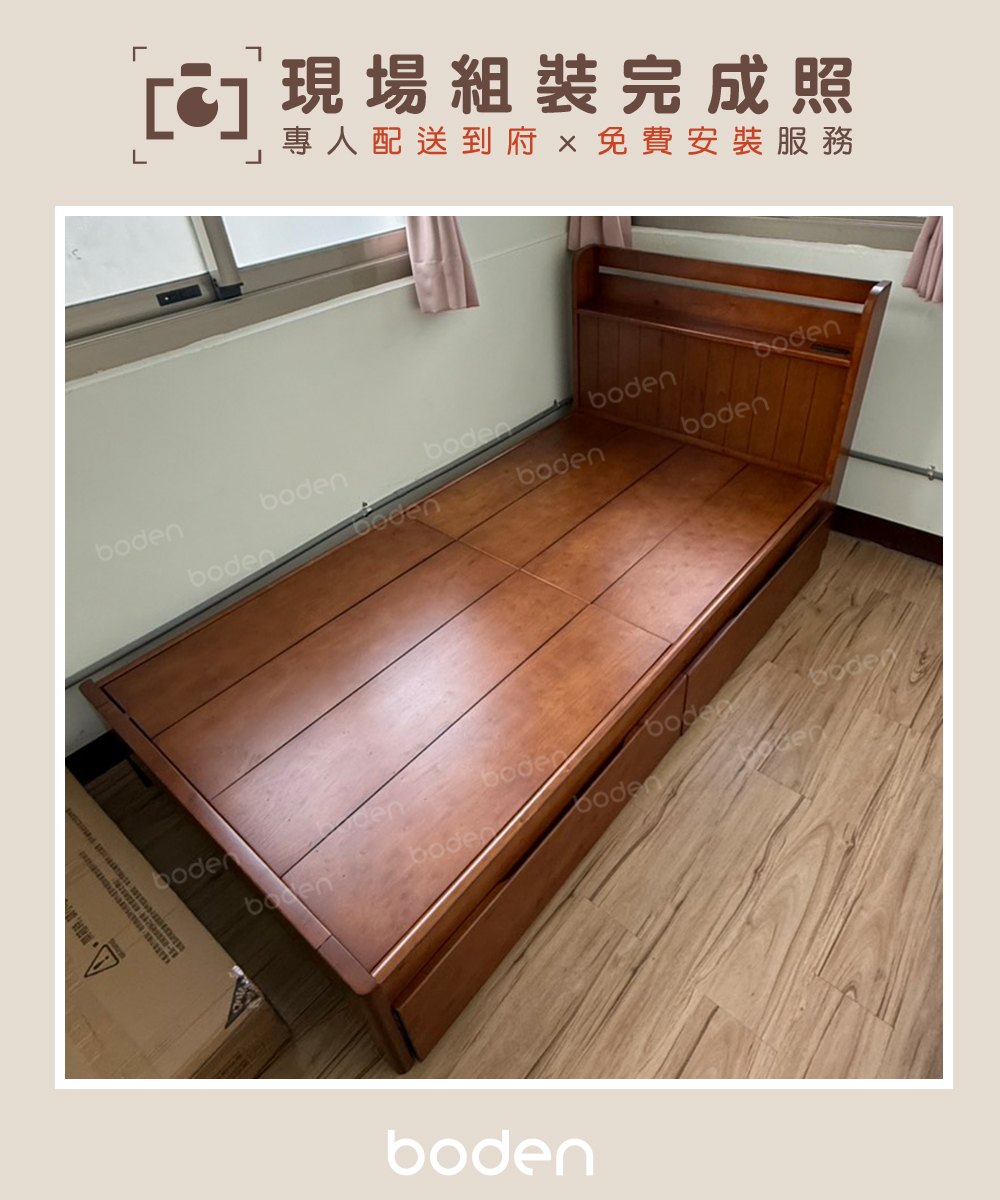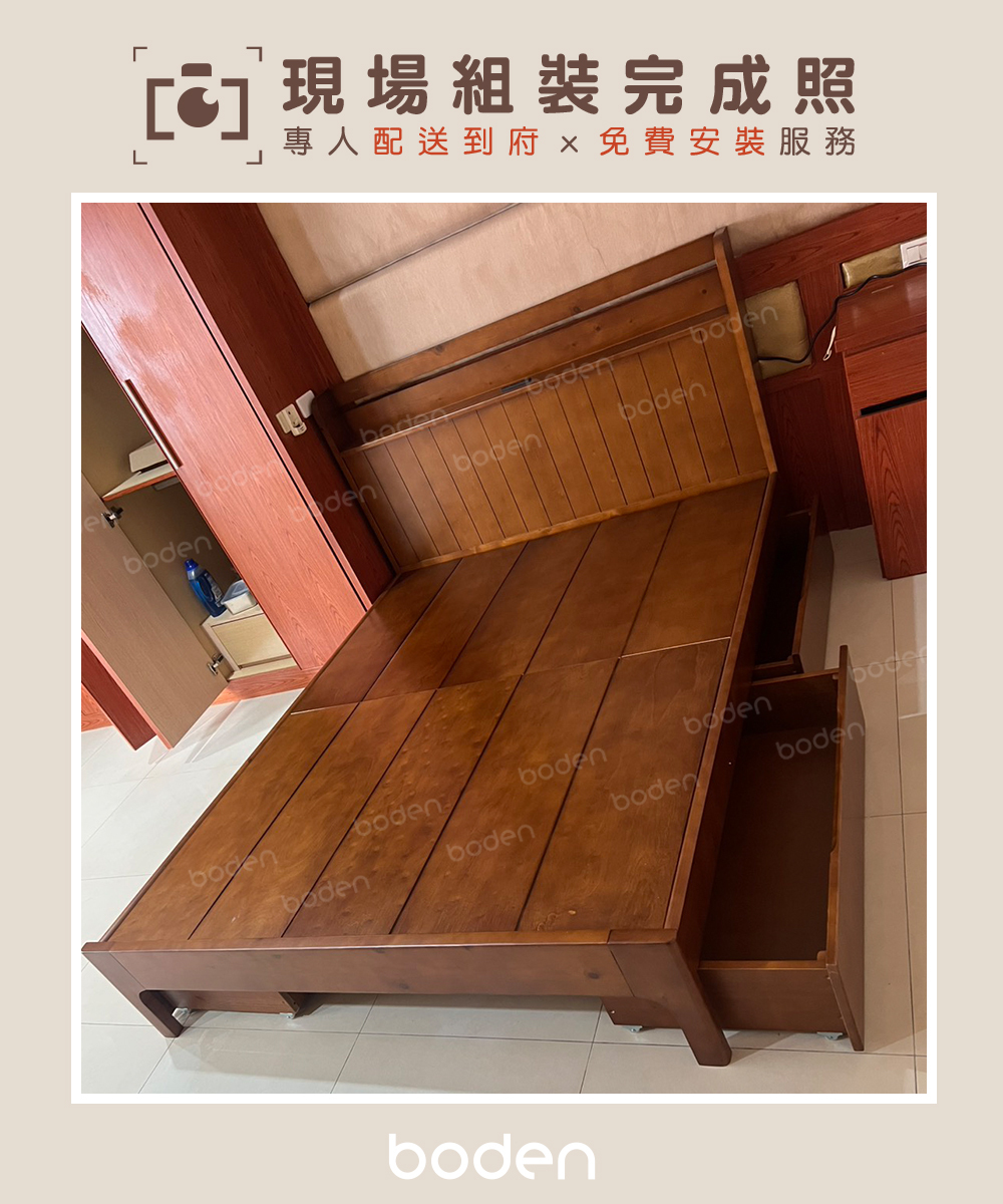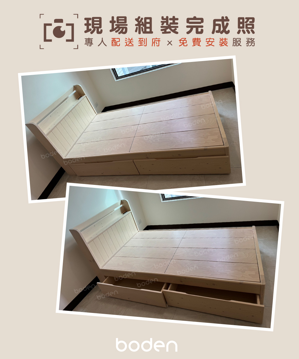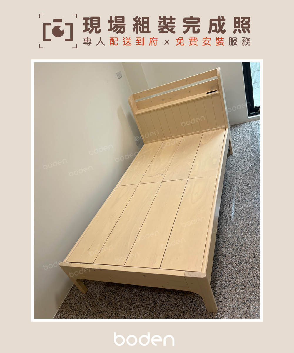 本頁整理了多張「奧尼床架現場組裝完成實拍照」,真實呈現 BODEN床架 在不同臥室風格與裝潢空間配置中的實際擺放效果,幫助您在參考BODEN家具評價時,快速找到最適合自己臥室的床架款式與配置靈感。