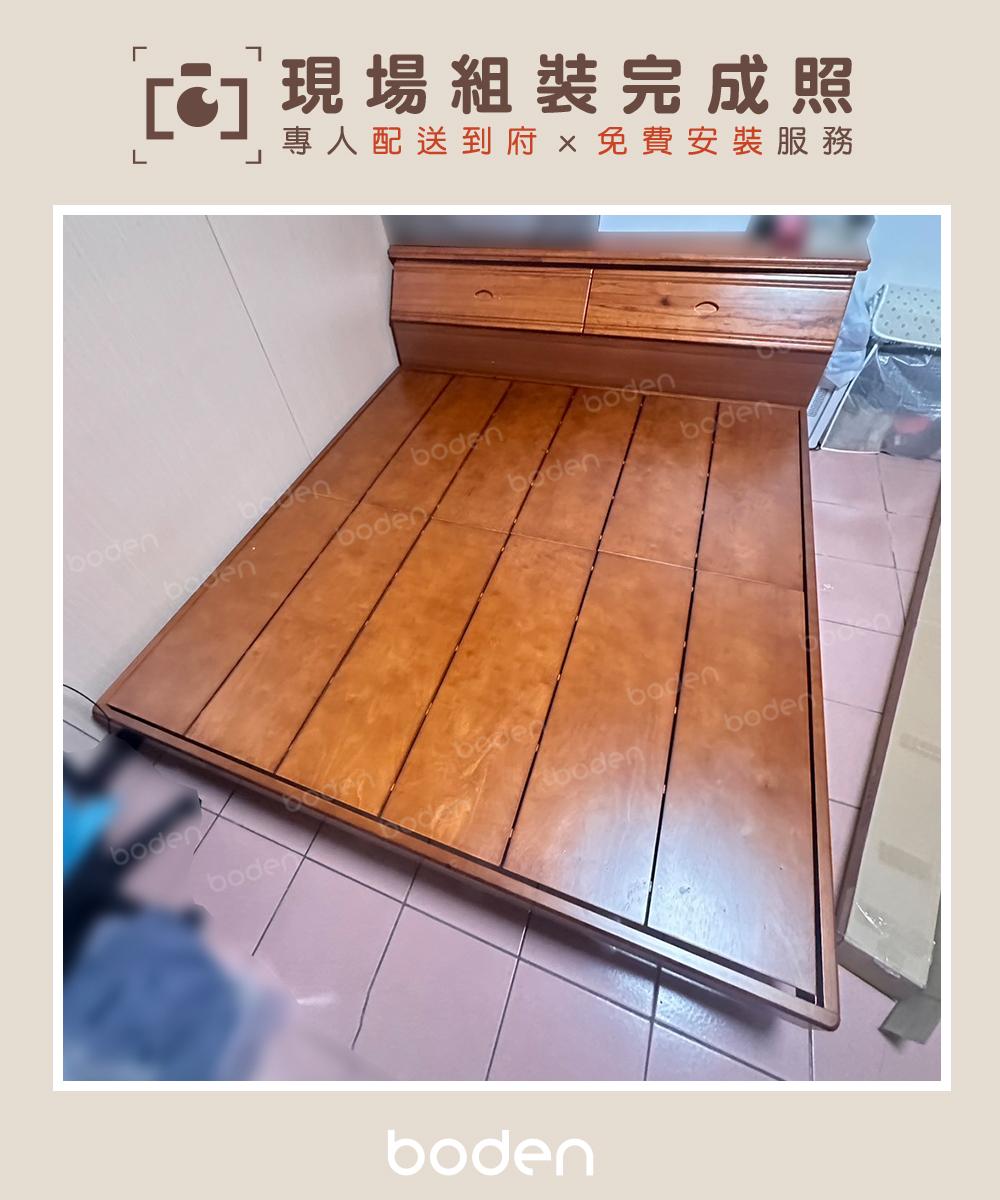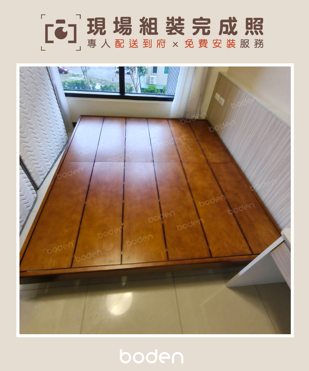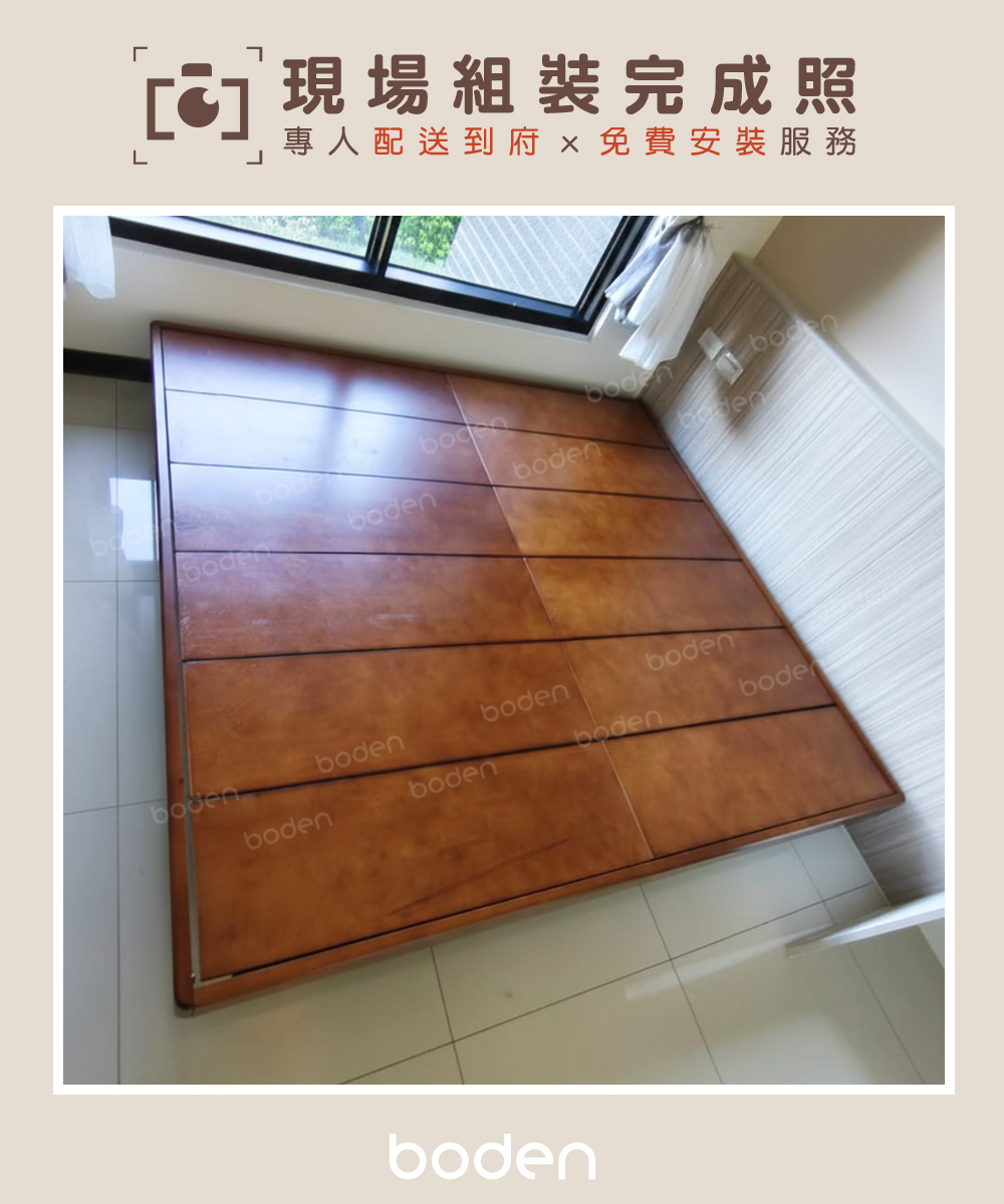 在結構與用料上,Boden家具 堅持高標準。嚴選實木材質製作,床架結構穩固、支撐性佳,不易晃動,長時間使用依然安心耐用。無論搭配獨立筒床墊或厚床墊,都能穩定承托,滿足對睡眠品質有要求的使用者。