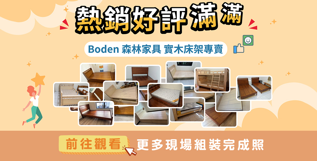 boden家具專注於實木床架設計與製作,累積多年銷售經驗,多款床架長期熱銷、好評回購不斷。