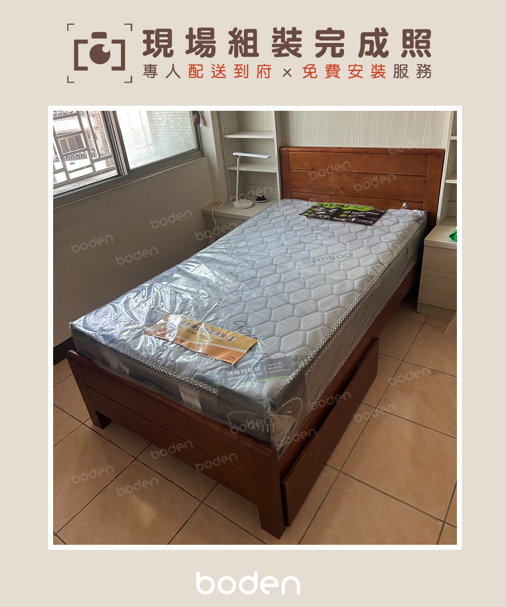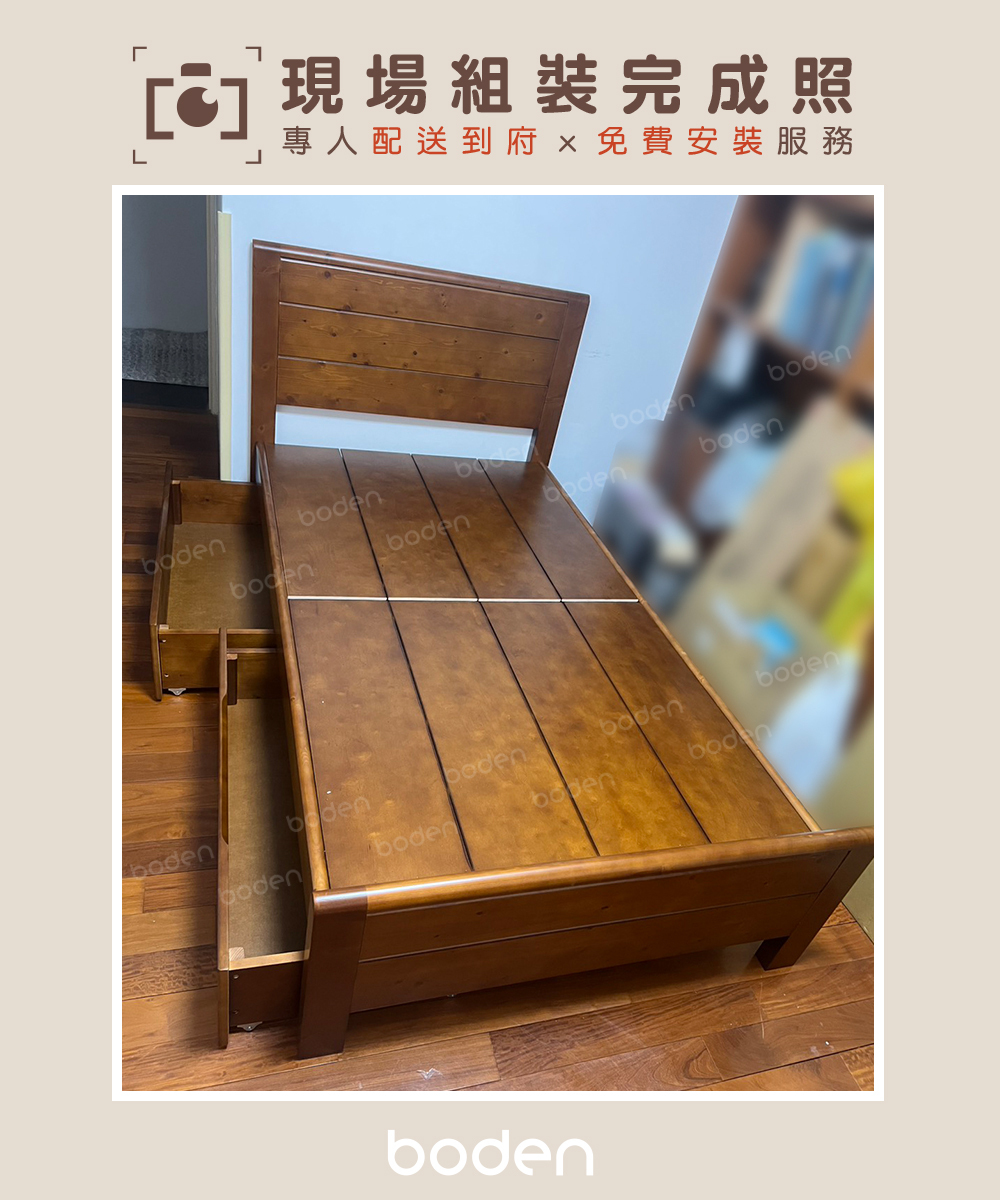 湯格3.5尺單人實木床架/床組-收納抽屜型(胡桃色)