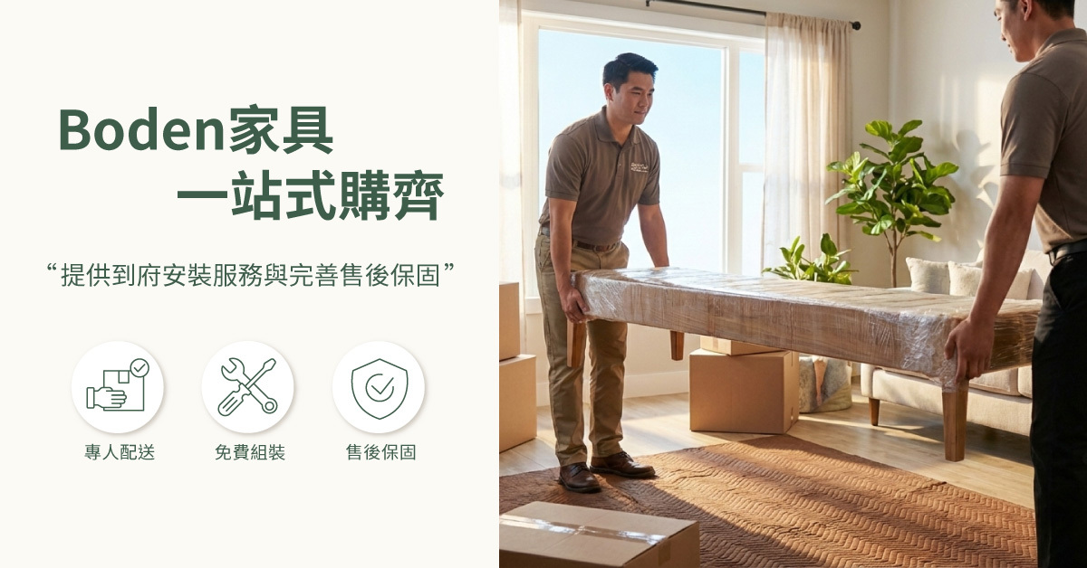 想更安心選購家具?Boden提供完整尺寸標示、到府安裝與售後服務,讓你從選購到使用都無後顧之憂。