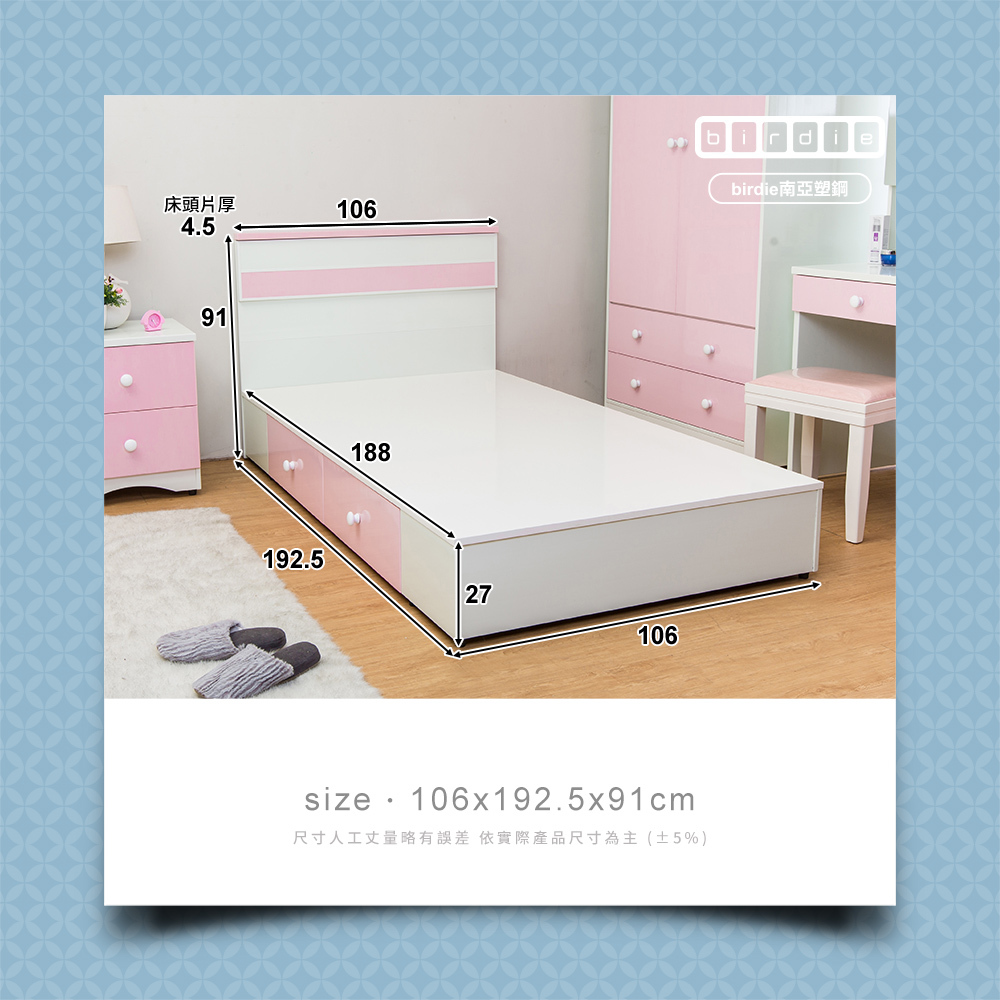 (抽屜床底)寬106x深188x高27cm