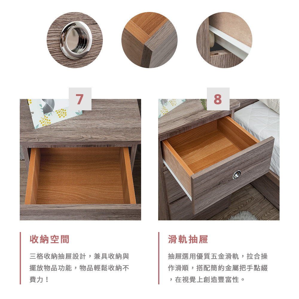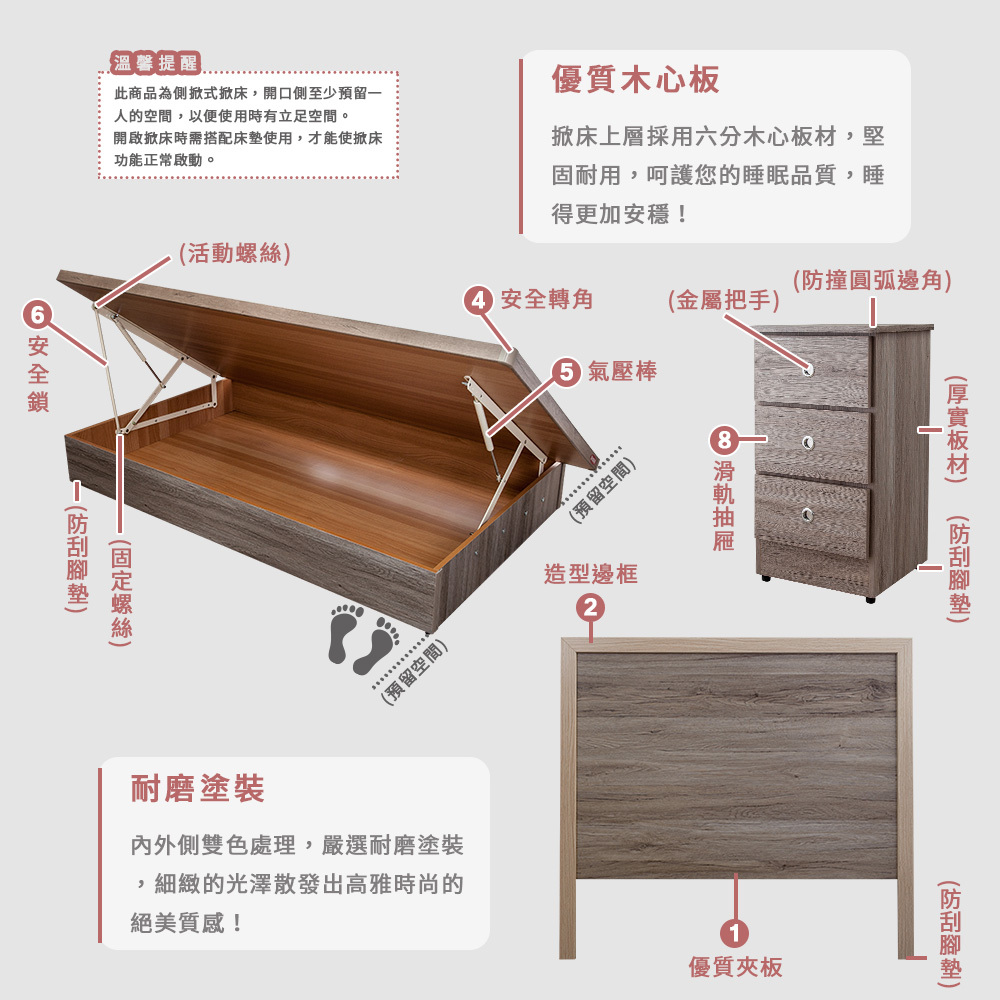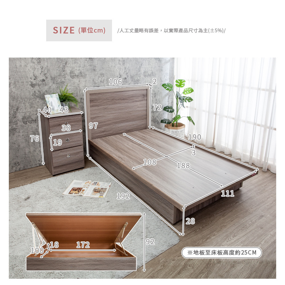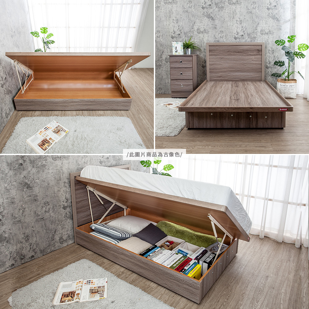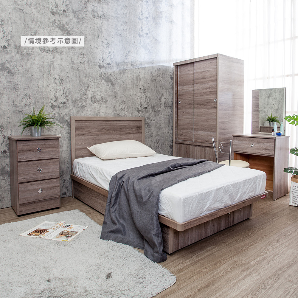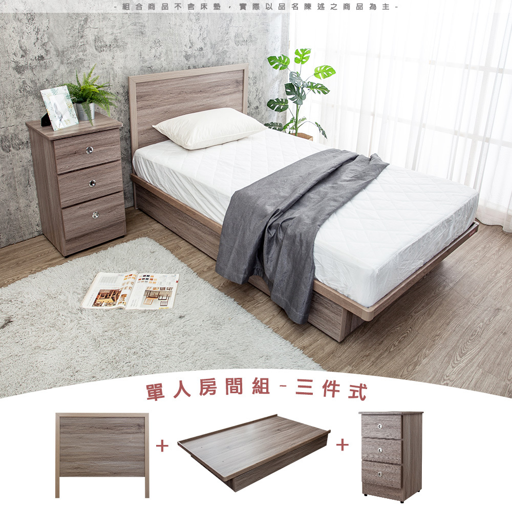 米恩3.5尺單人側掀床房間組-3件組-床頭片+側掀床底+三抽床頭櫃(古橡色-七色可選-不含床墊)