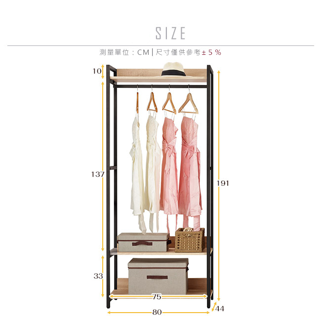 ◆尺寸:寬80x深44x高191cm
