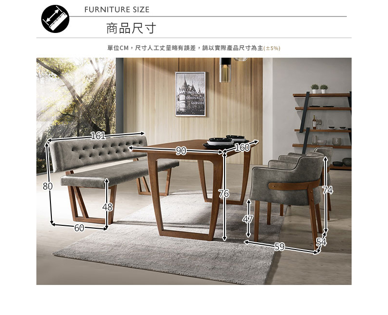 (長椅) 寬161x深60x高80cm 座高48cm