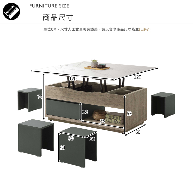 (茶几收合)寬120x深60x高53cm