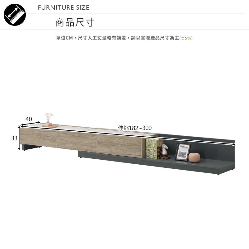 ◆尺寸:寬182~300x深40x高33cm