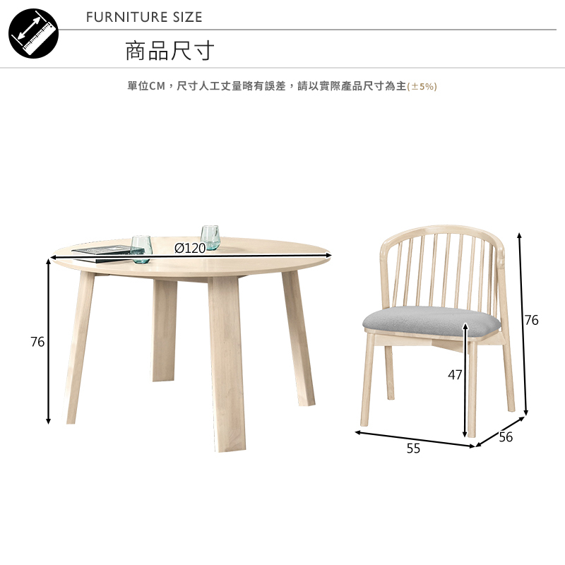 (桌)寬120x深120x高76cm