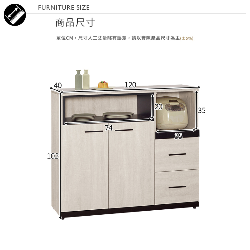 ◆尺寸:寬120x深40x高102cm