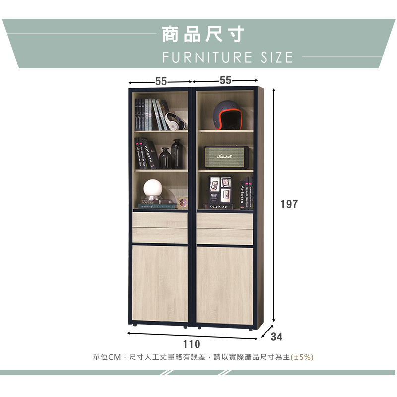 ◆尺寸:寬110x深34x高197cm