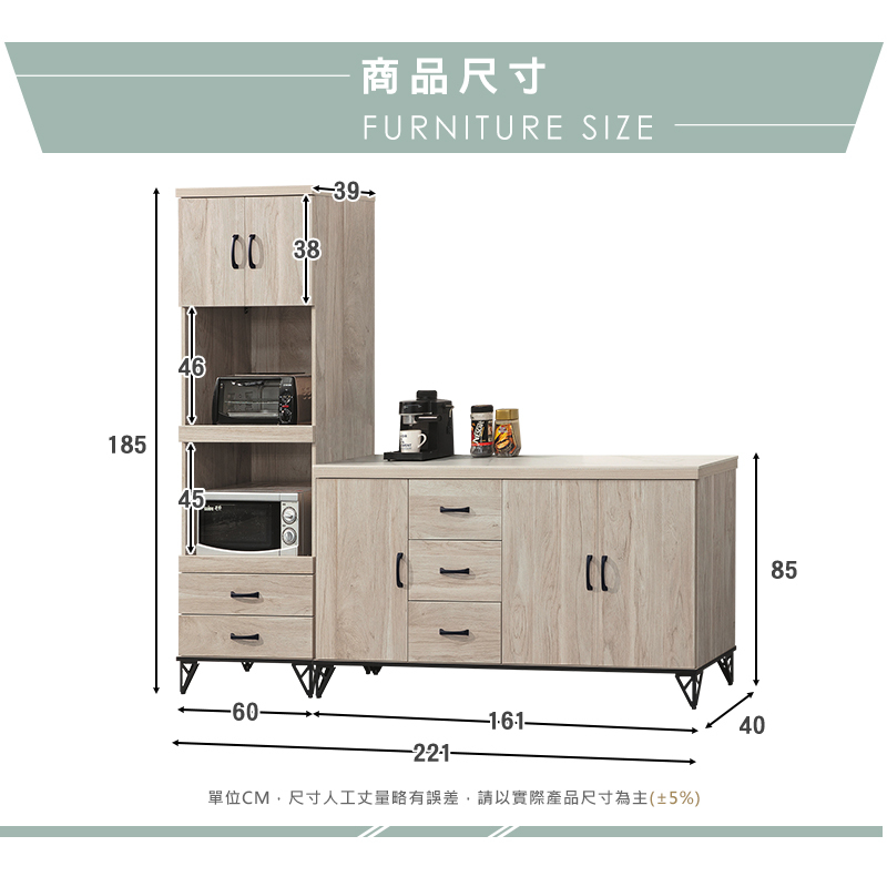 ◆尺寸:寬221x深40x高185cm