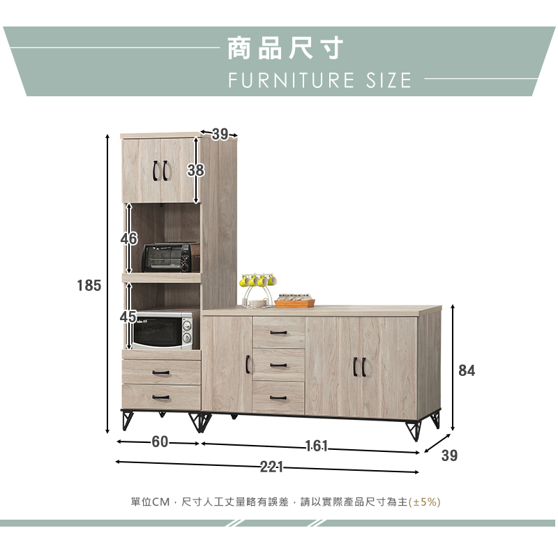 ◆尺寸:寬221x深39x高185cm