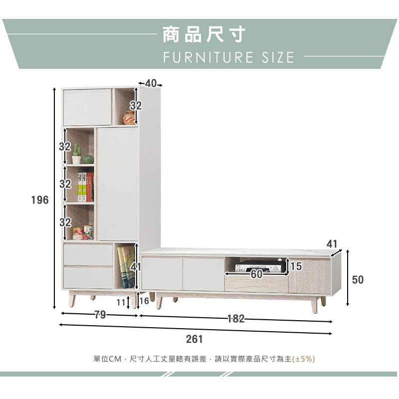 ◆尺寸:寬261x深41x高196cm