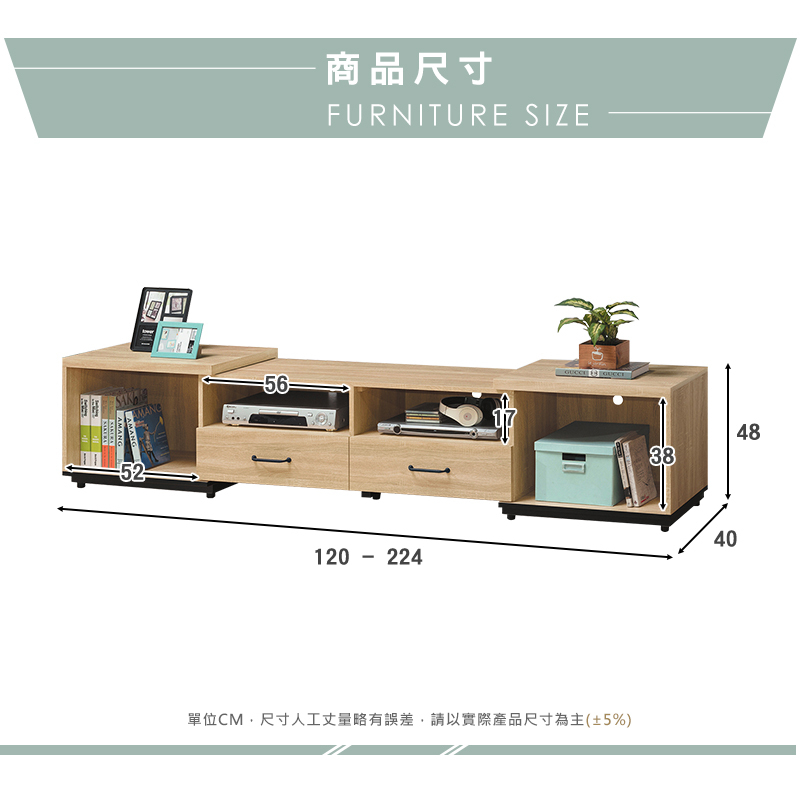 ◆尺寸:寬120-224x深40x高48cm