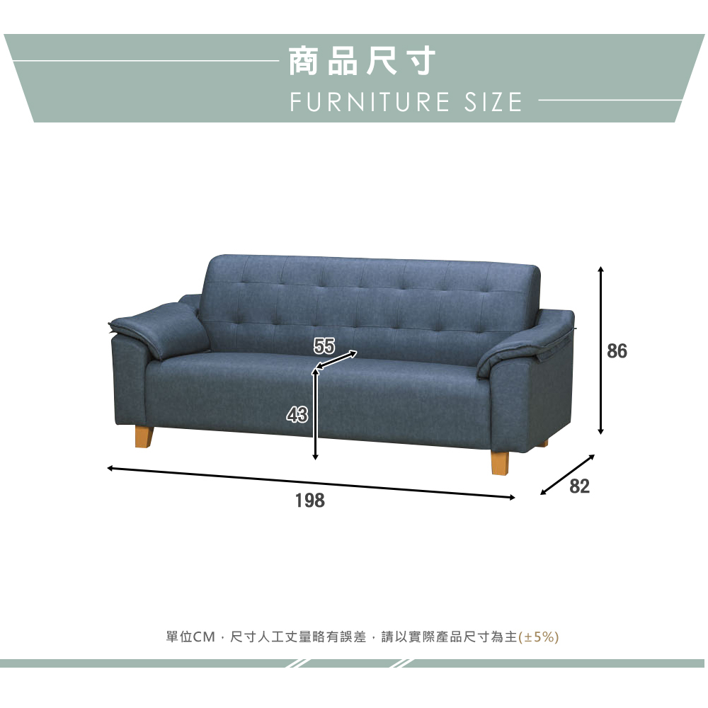 ◆尺寸:寬198x深82x高86cm