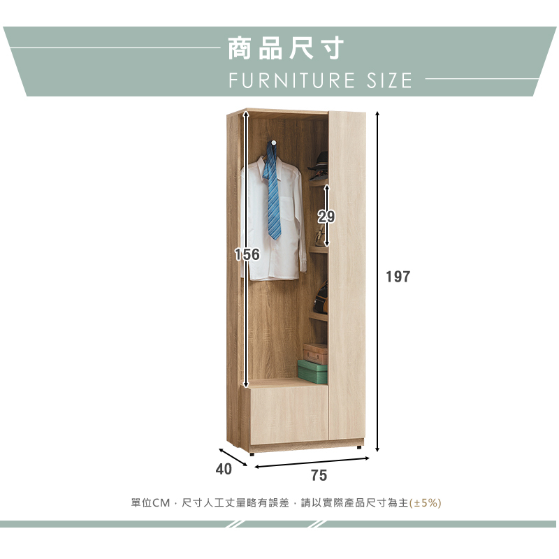 ◆尺寸:寬75x深40x高197cm