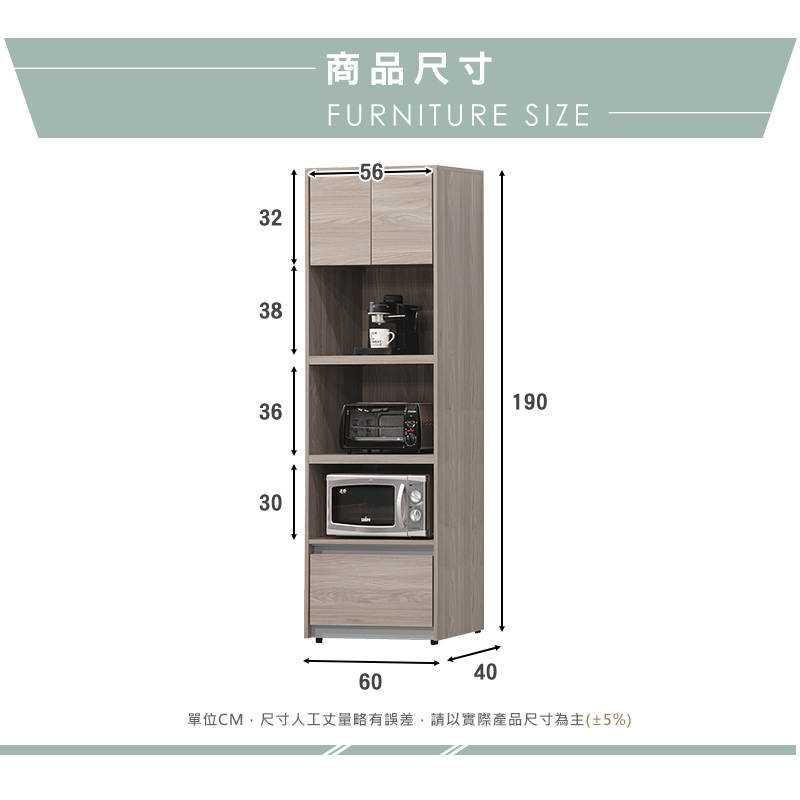 ◆尺寸:寬60x深40x高190cm