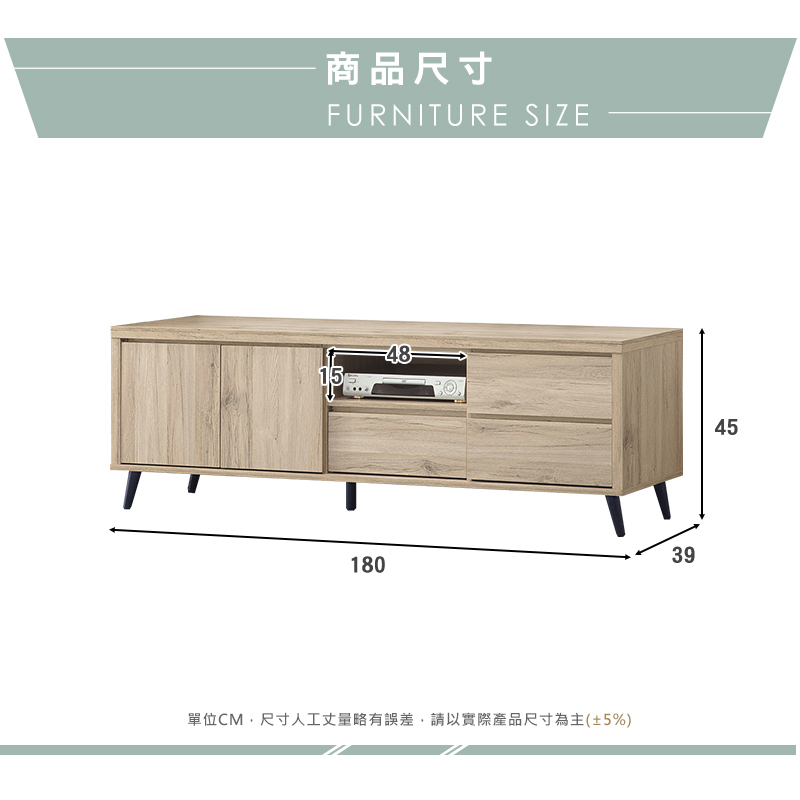 ◆尺寸:寬180x深39x高45cm