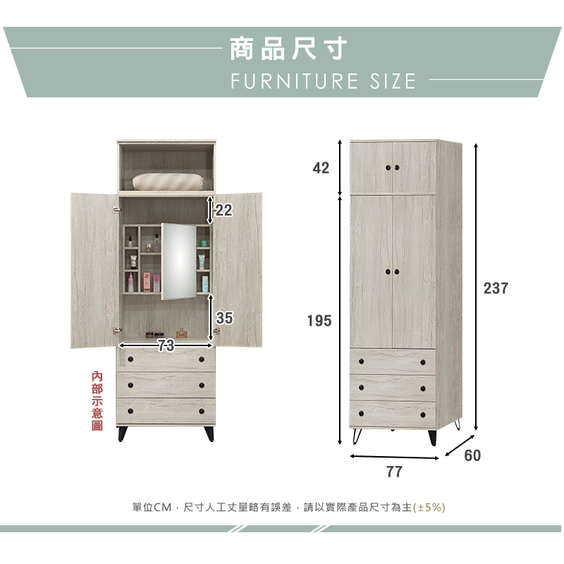 ◆尺寸:寬77x深60x高237cm