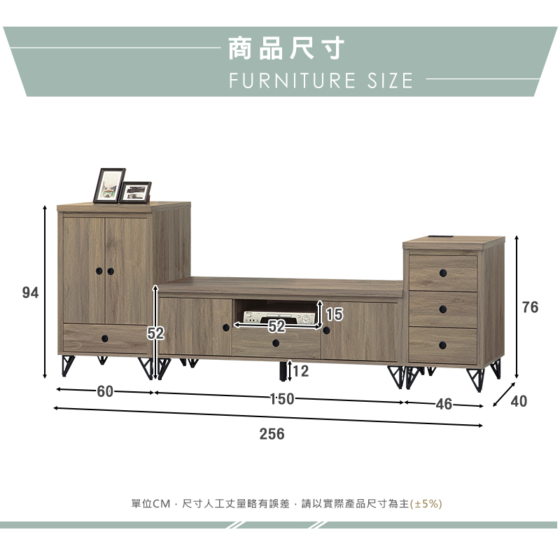 ◆尺寸:寬256x深40x高94cm