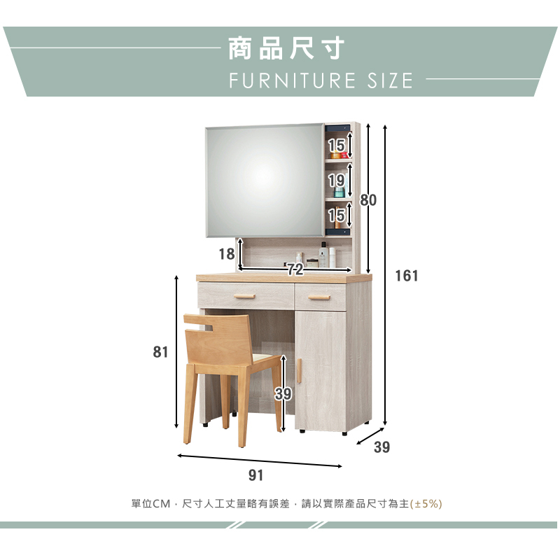 ◆尺寸:寬91x深39x高161cm