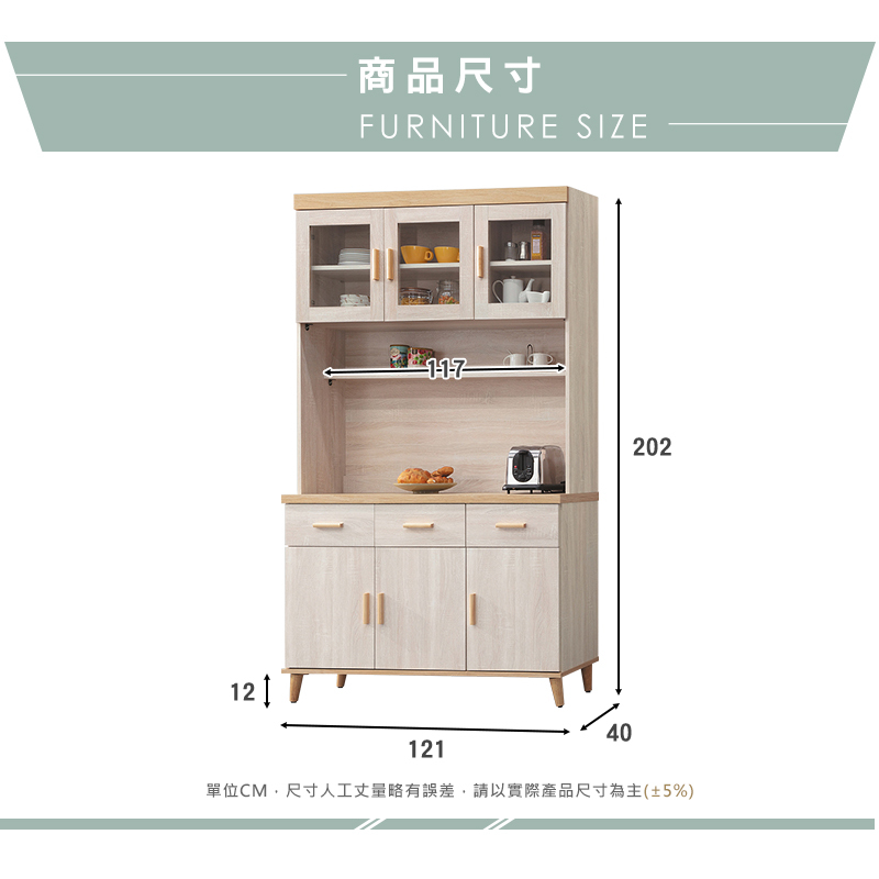 ◆尺寸:寬121x深40x高202cm