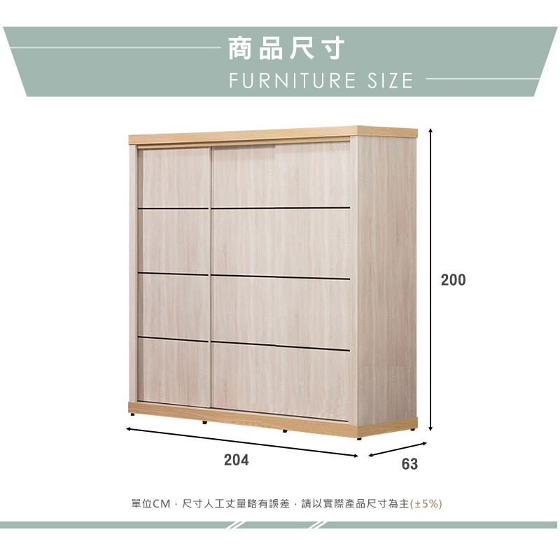 ◆尺寸:寬204x深63x高200cm