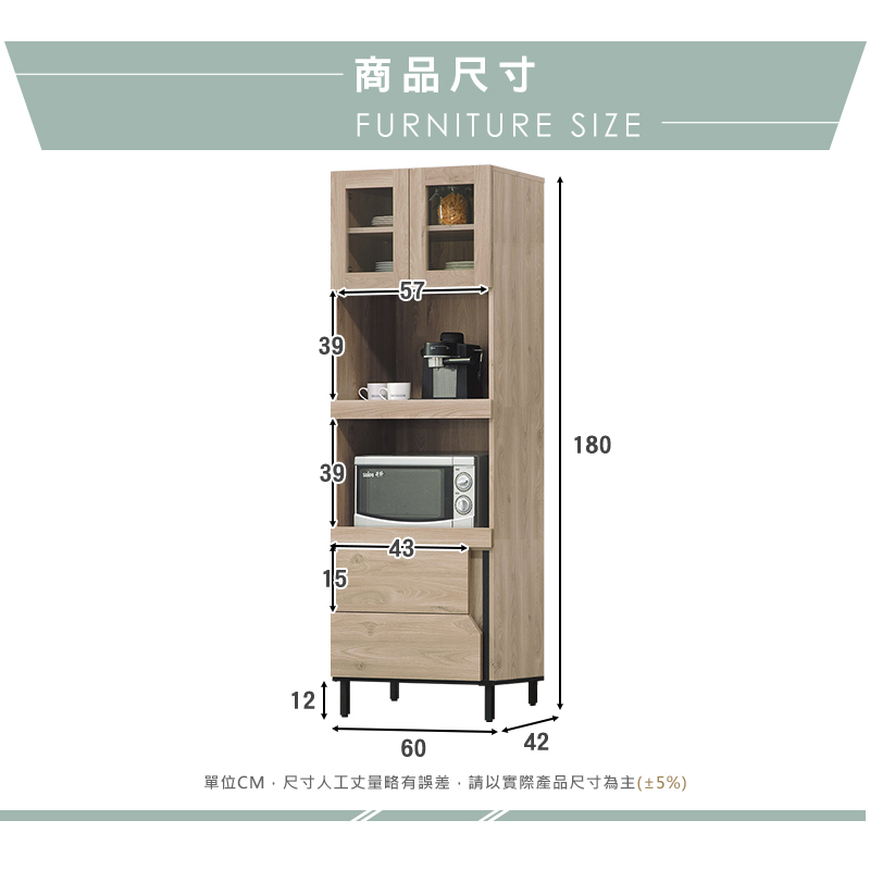 ◆尺寸:寬60x深42x高180cm