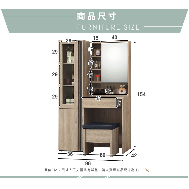 ◆尺寸:寬96x深42x高154cm