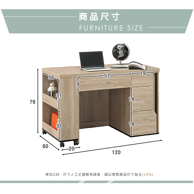 ◆尺寸:寬120x深60x高76cm