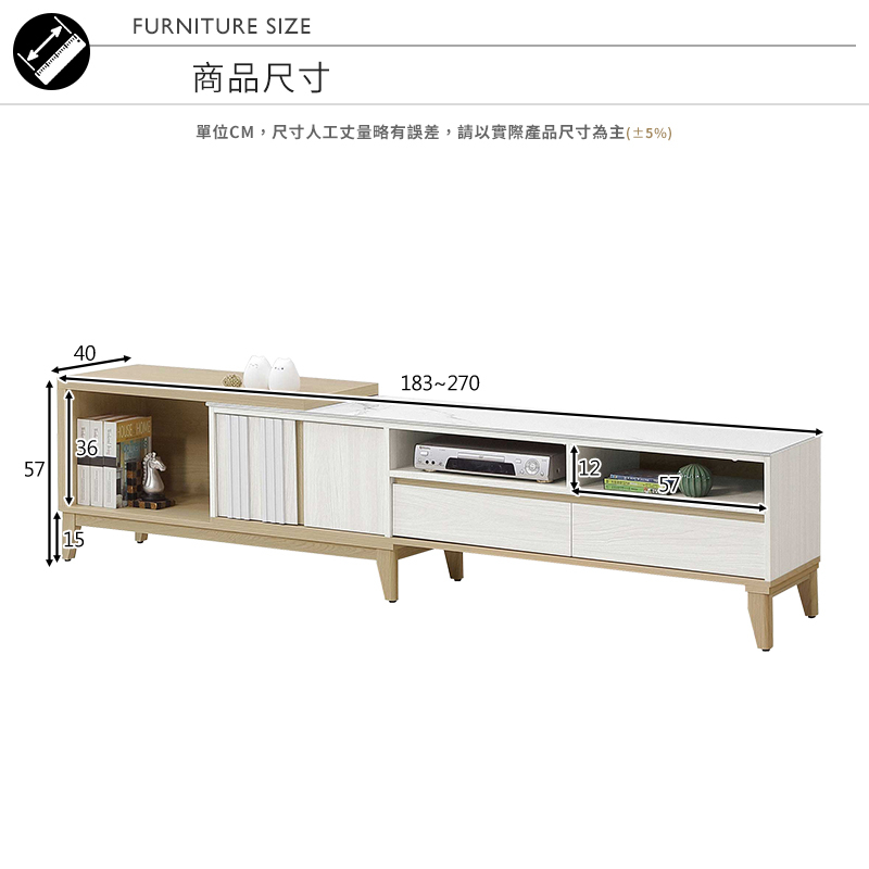 ◆尺寸:寬183~270x深40x高57cm